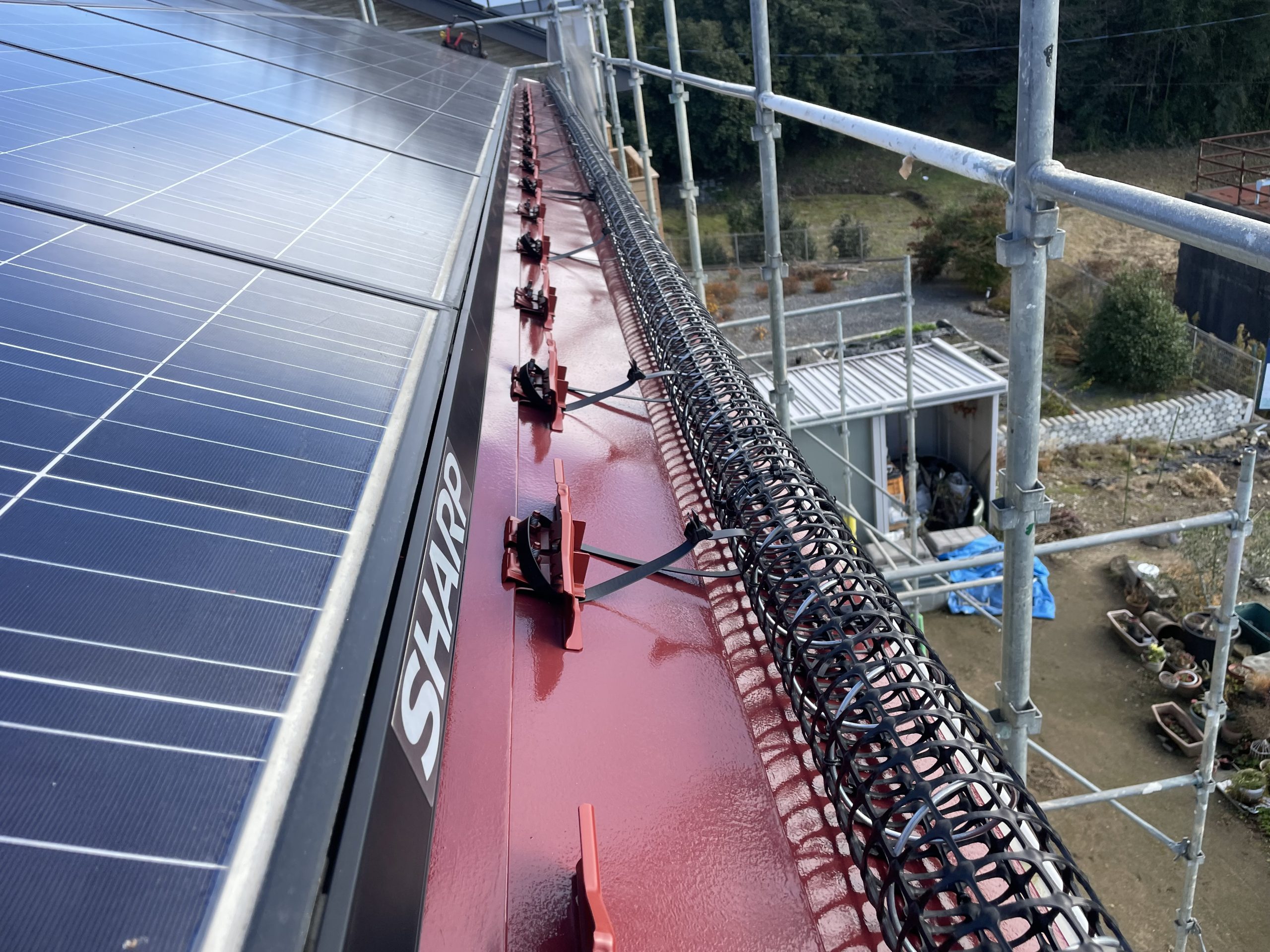 ソーラー部分には 雪止めくん、